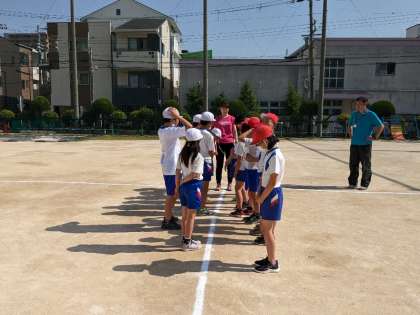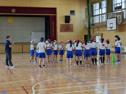 「屋内スポーツ」、「屋外スポーツ」は早速ドッジボールを行っていました。