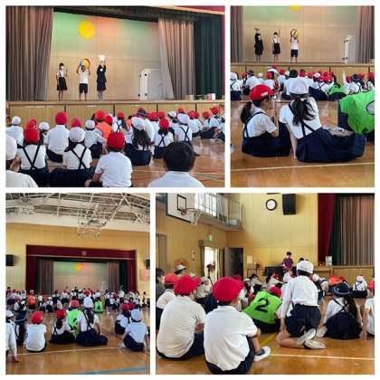 集会委員会の子どもたちがみんなが楽しめるようにいろいろと工夫をしていました。
