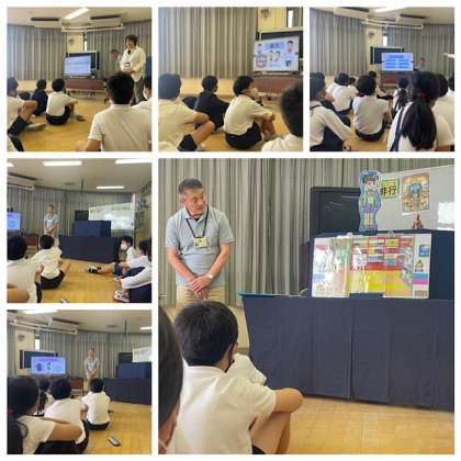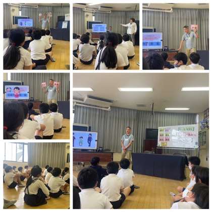 5月23日,5年生になんば少年サポートセンターから、もと警察官や職員の方を迎えて非行防止教室が開かれました。