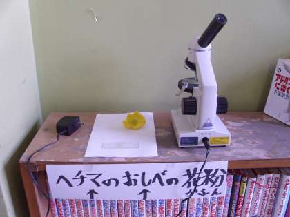 早速、顕微鏡でおしべの花粉を観察しましたっ!! (^o^)丿
