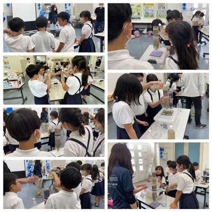 子どもたち一人一人に役割があり、汚れている水を秘密の砂を通して、きれいにしていきました。