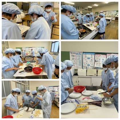 グループで協力して、準備から用意、野菜を切る、焼くなどをしていました。