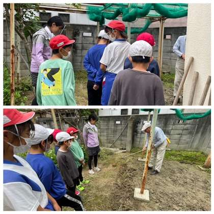 ゲストティーチャーから、くわの使い方を教えていただきスタートです。