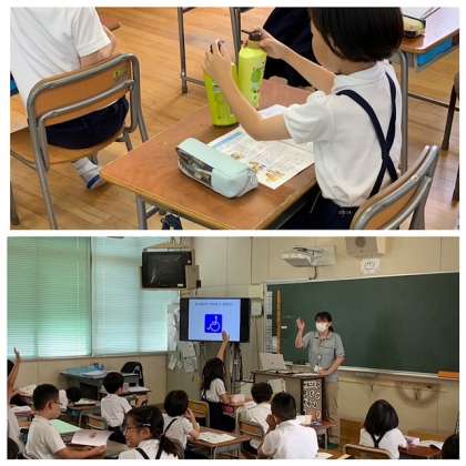 今日,3年生は、地域の方、大正区北部地域包括支援センターの方に来ていただき、みんなが幸せに暮らせるように、身の回りにいろいろな工夫されたものがあることを知り、自分にできることは何か考えました。
