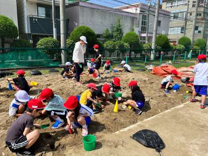 本日の1時間目に、1年図画工作科「すなやつちとなかよし」を行いました。すなや土にふれながら、作りたいかたちを思いつき、思い思いに活動しました。