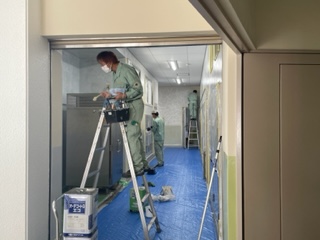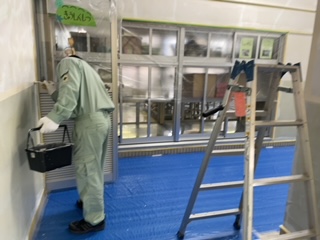 今回は給食室の子どもたちが通るところを綺麗にしていただきます。