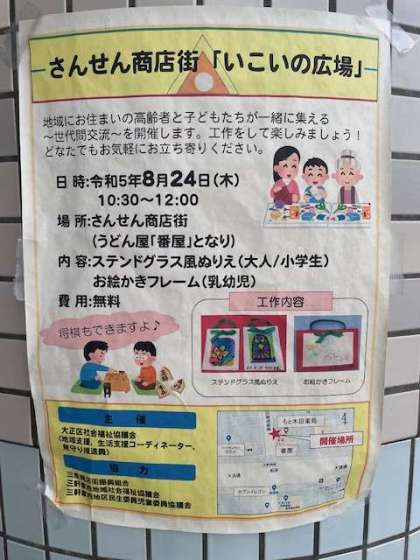 8月24日水曜日10時30分から12時まで、さんせん商店街です。