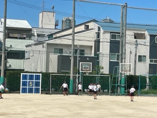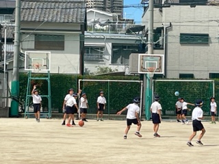 休み時間は暑いながらも,元気に運動場で遊んでいました.