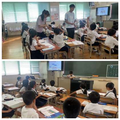 前に出てタブレットに書いたり、言葉で伝えたり子どもたちが思い思いに伝えます。