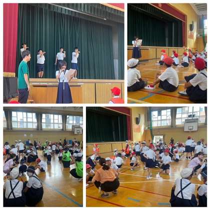 最後に図画工作作品での表彰と児童会から運動会のスローガンについての連絡がありました。