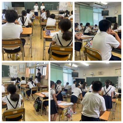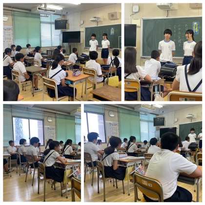 9月8日の朝の時間に,職場体験に来ている中学生が、リーダーたちに、中学校ってこんなところだよと話をしてくれました。