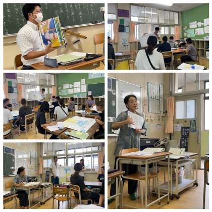 スクールアドバイザーの講師先生を紹介したあと、教員もそれぞれのグループに分かれて、自分の意見を持ち,伝え合いました。