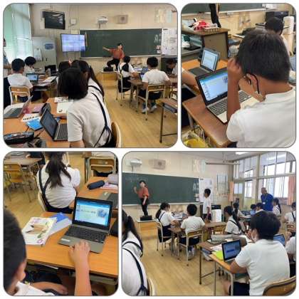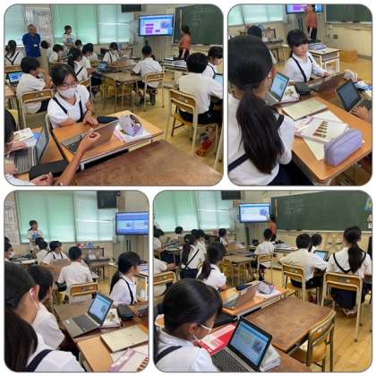 タブレットに自分の考えを書き、それを映し出し、似ている考えをまとめ,発表していました。
