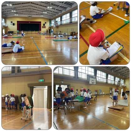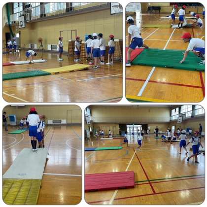チェックポイントも理解して、いろいろな場で開脚前転に取り組みました。
