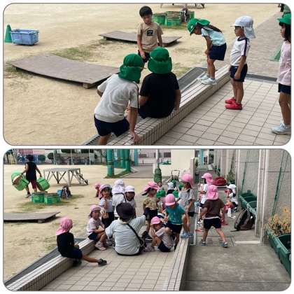 ?9月21日、三軒家西幼稚園からみんなで三軒家西小学校へ遊びに来てくれました。