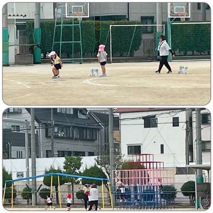 元気いっぱいに運動場を駆け回る園児たち。