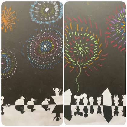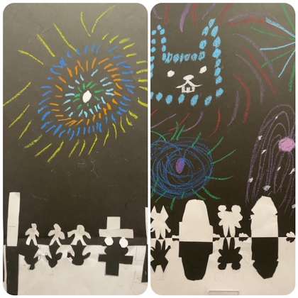 黒と白の画用紙を使い、色鮮やかに仕上がりました。