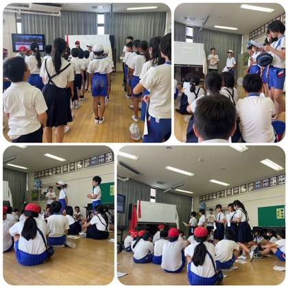 4年,5年,6年の応援団のメンバーが集まり,自己紹介と共に,応援団にかける思いを伝えました。