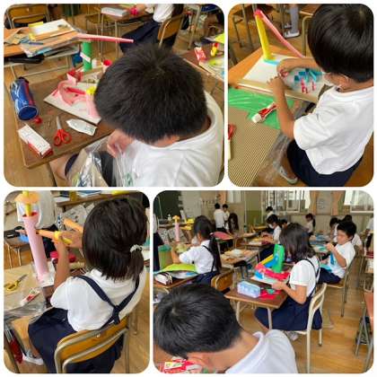 つくりながら、ビー玉を転がして,楽しんでいました。