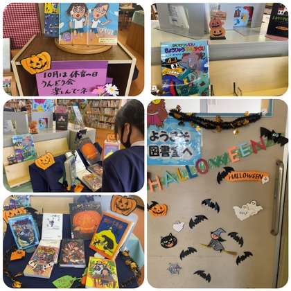三軒家西小学校の図書室が、ハロウィンモードになりました。