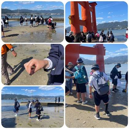 三軒家西小学校のリーダーの行動がとても早いので、食事の後に,大鳥居に行きました。