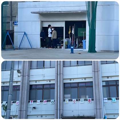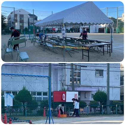 金曜日の雨予報のために残っている準備を,朝早くから教職員がしています。