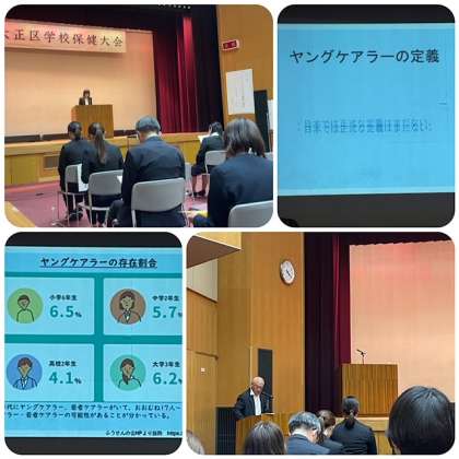 学校保健大会は、幼稚園,小学校,中学校と学校医,学校歯科医,学校薬剤師とPTAの皆様が子どもたちの命や安全を守るために、共に知り、考え、行動につなげる大会です。