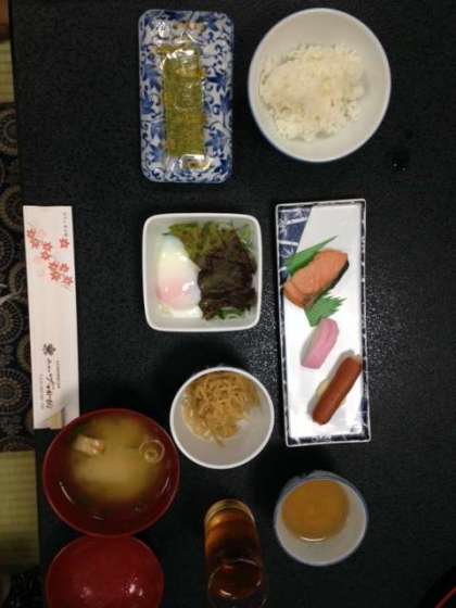 起床後、朝の支度と荷物の整理を済ませての朝食です。