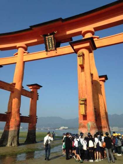 まだ地面は濡れて小さなカニが歩いている中、干潮の宮島で、鳥居のたもとまで歩いて行くことができました☆彡