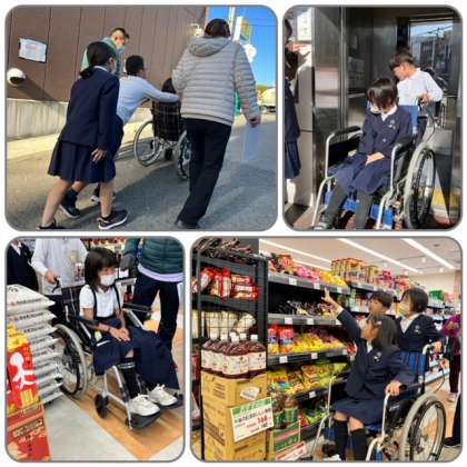 地下鉄の通路を通ったり,お店で買い物をしたり、いろいろな場面で車椅子で行動しました。