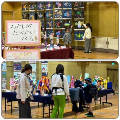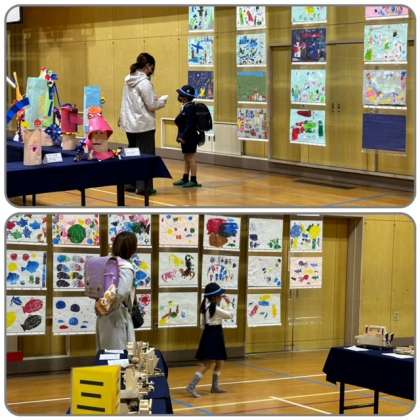 中学年,高学年の作品の素晴らしさに気づくと共に、自分の作品を一生懸命に説明していました。