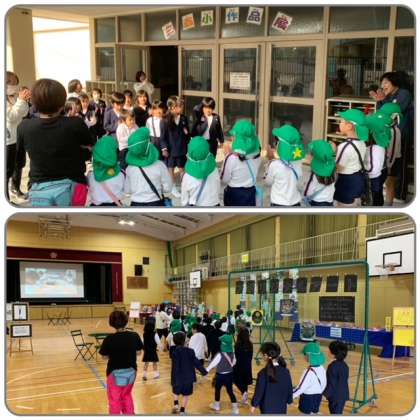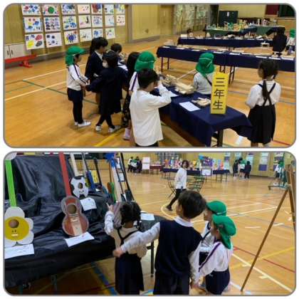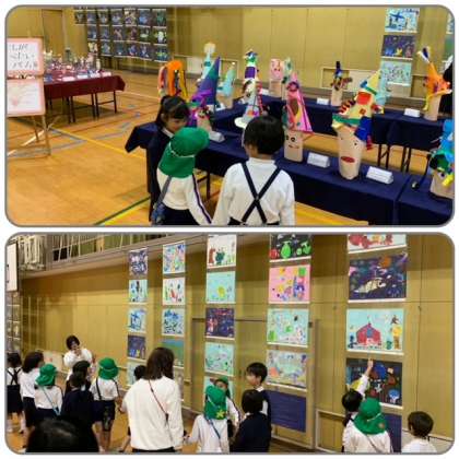 11月24日の3時間目に,三軒家西幼稚園の松組さんが作品展を見に来てくれました。
