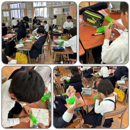最後に乾電池が配られ、電気がついたら、とてもうれしそうでした。