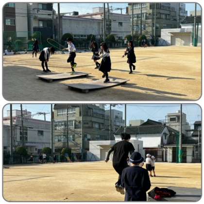 音楽に合わせて縄跳びをしたり、ボールを使ったり、先生も一緒になって楽しでいました.