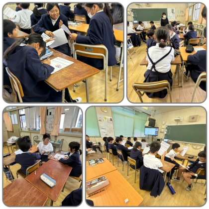 中学年チームと同じように、ワークシートを使って自分の考えをもち、その後グループ討議をしました。