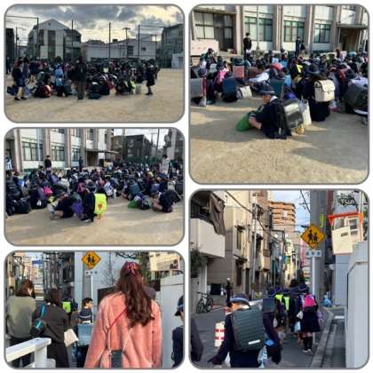 地区別児童会が終わったら,それぞれの班が運動場に降りてきました。