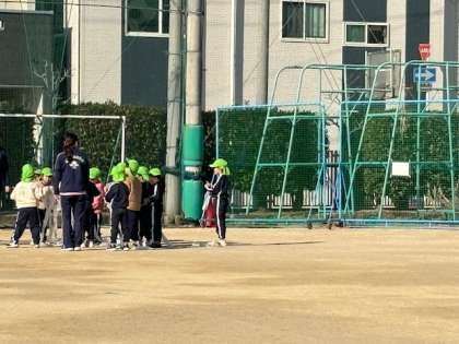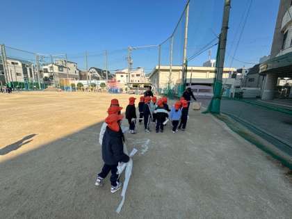 1月9日、夢の樹保育園の子どもたちが、三軒家西小学校の運動場に凧上げに来てくれました。