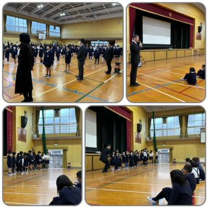 学校長からは、能登半島地震のこと、大谷選手のグローブのこと、そして,今の学年での最後の学期であることの話がありました。