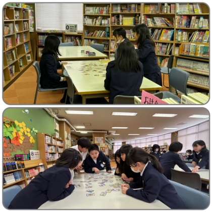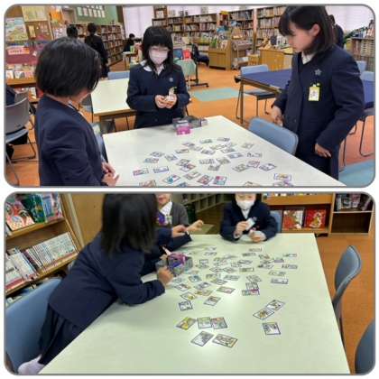 1月10日から図書室で五色百人一首やことわざカルタができるようになりました。