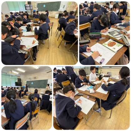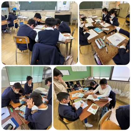 グループになって、どうやって書いたらいいか、学び合っていました。