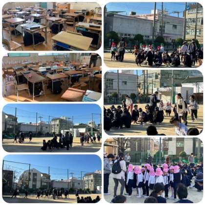 1月17日、三軒家西小学校と三軒家西幼稚園の合同防災訓練を行いました。