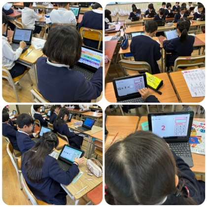 九九八十一というアプリを使って、かけざんに挑戦していました。