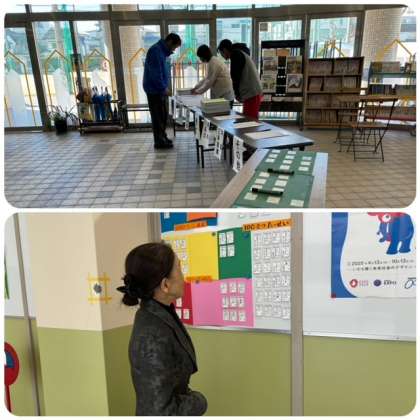 本日の講師先生も、それぞれの掲示物を見てくださっています。