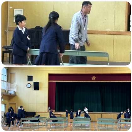 教務の先生が、サブリーダーの教室へ行き、お手伝いしてくれませんか?というと、たくさんの子どもたちが気持ちよく講堂に来てくれました。