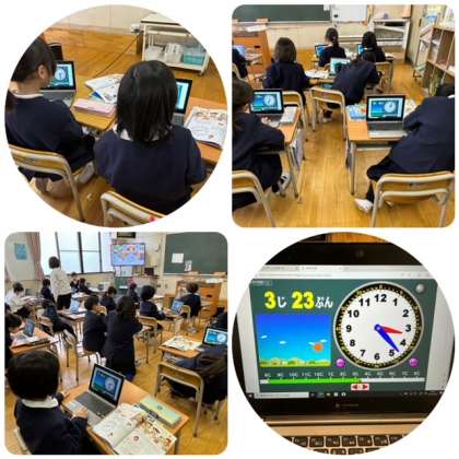 こちらは、時計の学びをタブレットを使ってやっていました。