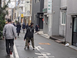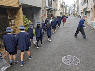 第九町会チームは、三泉商店街のあたりに行きました。