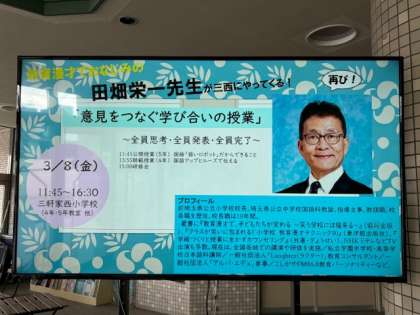 3月8日、待ちに待った田畑先生が三軒家西小学校にお越しくださいました。