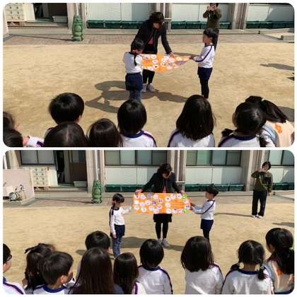 さっそく校長室の前に飾って、みんなが見ることができるようにしました。