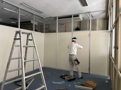 パーティションを入れて、教室を作り変えています。
