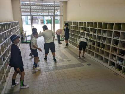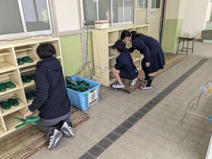 4月4日(木)、新6年生のリーダーが明日の入学式のために準備に来てくれました。